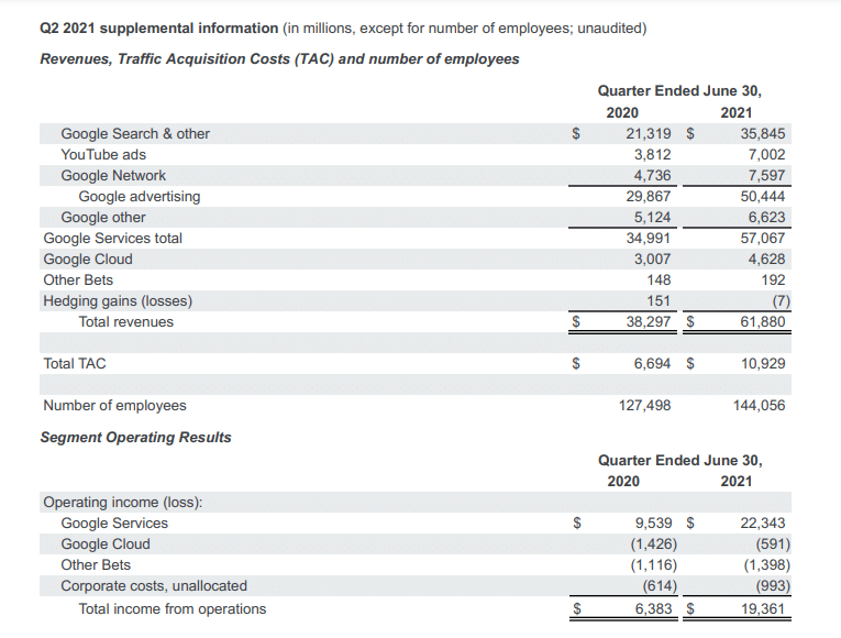 ‘’Our strong second quarter revenues of $61.9 billion reflect elevated consumer online activity and broad-based strength in advertiser spend.’’ said Ruth Porat, CFO of Google and Alphabet. ‘’Again, we benefited from excellent execution across the board by our teams,” he added.