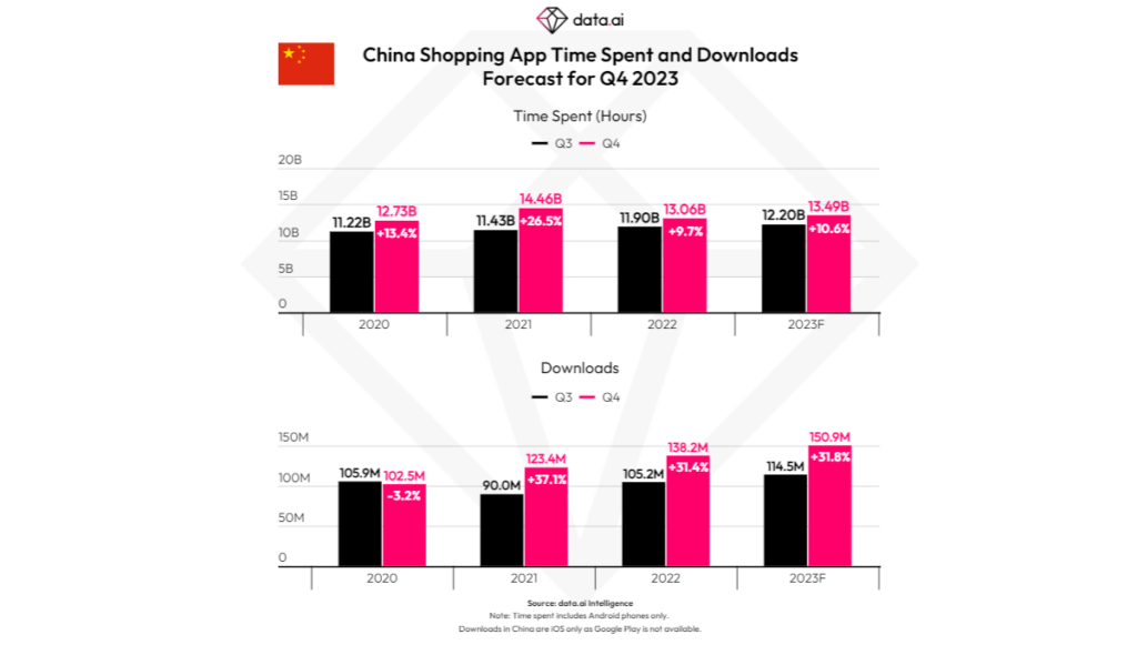 Furthermore, iOS shopping apps are making a comeback in China, with downloads projected to increase by over 30% for the third consecutive holiday season. It is anticipated to surpass 150 million downloads for the first time in five years.