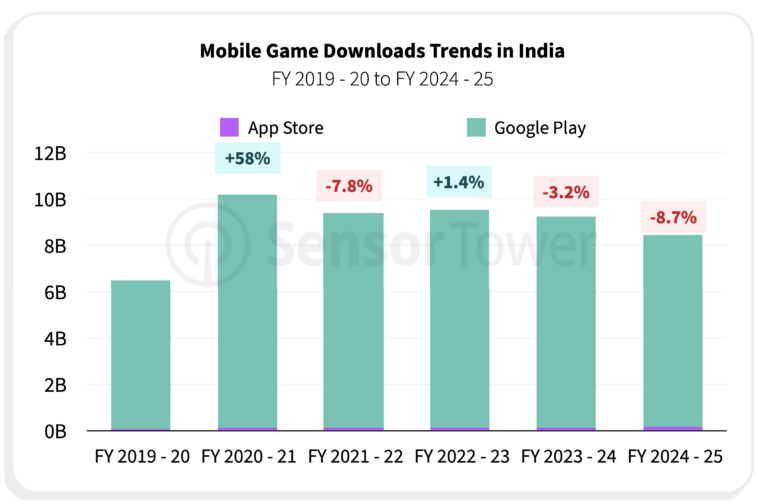 While overall downloads on Google Play dipped 8.7% year-over-year, IAP revenue on the platform still grew by 8.5%, with the App Store seeing a robust 31% jump in IAP revenue — a signal that Indian players, especially those on iOS, are warming up to spending more on games and digital extras.