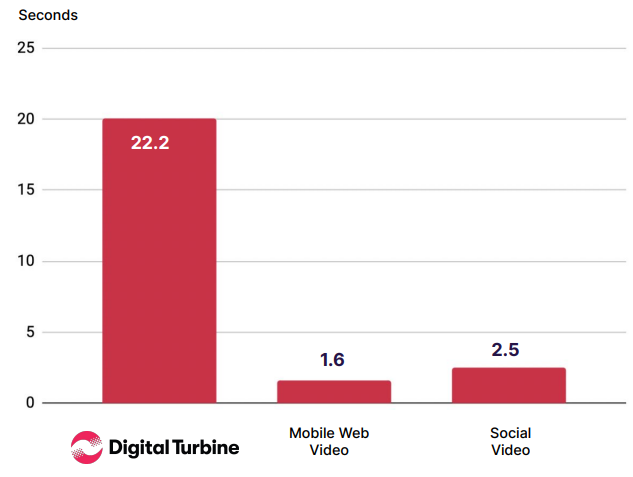 According to the study, for which the duo tested seven brands, Digital Turbine’s video ads grab users’ attention for a total of 22.2 seconds.