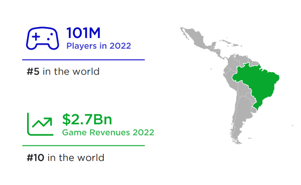 According to Newzoo’s new report, Brazilian player spending on games has surpassed $2.7 billion and the country now has over 101 million players. That makes the country No.5 in the world in terms of number of players and No.10 in terms of game revenue.