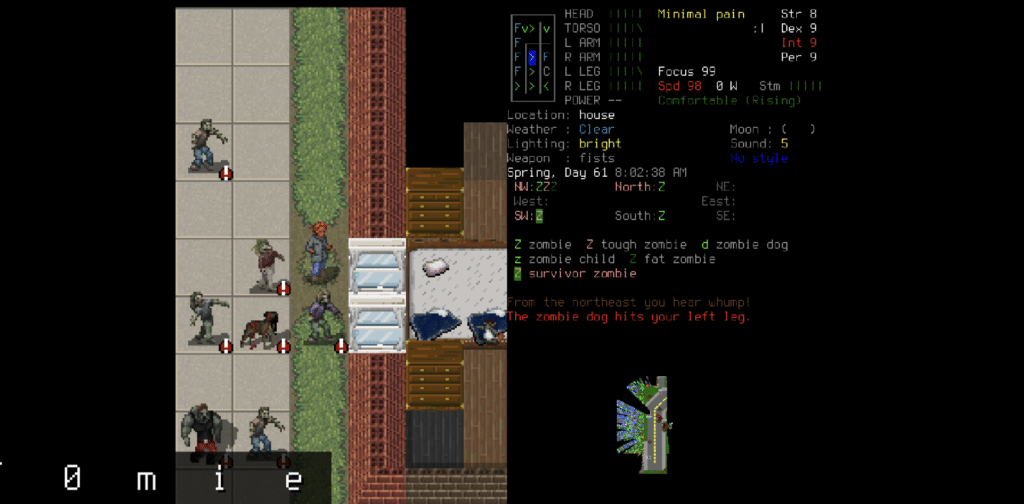 Cataclysm: Dark Days Ahead is a turn-based survival game that offers a post-apocalyptic world experience. Players will find themselves struggling to survive in a challenging world. The game features zombies, giant bugs, killer robots, and many more deadly and scary monsters. Players must find food and water to survive while battling fearsome monsters.