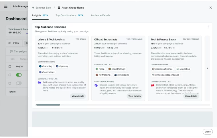 Beyond automation, Reddit is positioning Max Campaigns as a more transparent alternative to existing “black box” AI ad products. The campaign type introduces a new reporting feature called Top Audience Personas, which groups users exposed to an ad into AI-generated personas based on interests and behavior. Advertisers can see which personas are engaging most with a campaign and what topics those groups are currently interacting with on Reddit.
