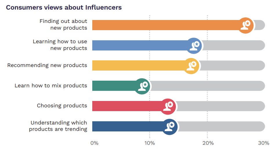 Nearly 30% of respondents said that posts shared by celebrities or influencers help them find out about new products.