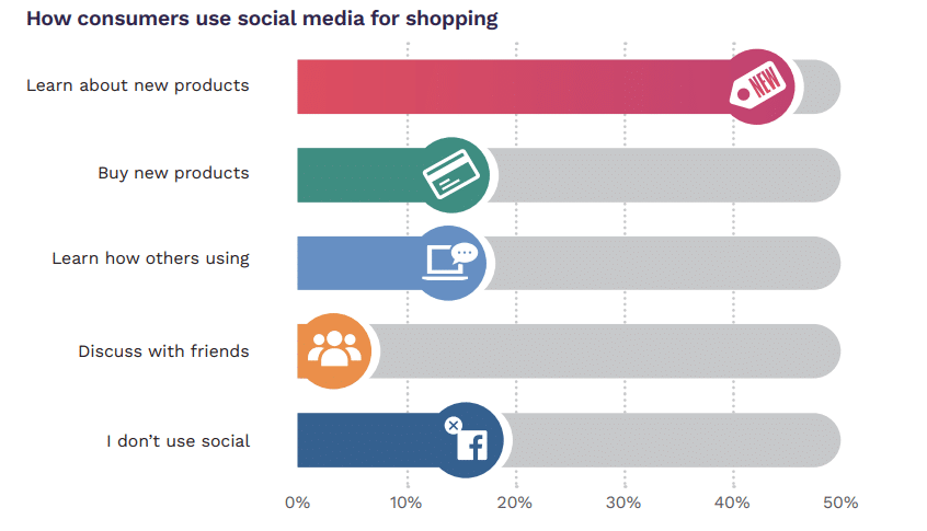 The State of Social Commerce 2022 report suggests that this is because the majority (71%) of consumers are more likely to visit a brand’s website to make a purchase without taking an action on social media platforms. Instead, they prefer to use these platforms mostly for product discovery.