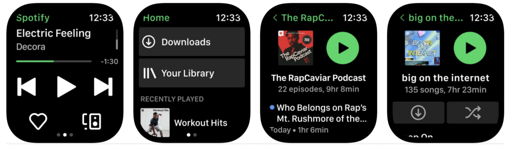 For the ones looking for a music streaming app for Apple Watch, Spotify might be a good match. Via Spotify’s Apple Watch app, you can play, pause, and skip music and podcasts, control the volume, save a song or a podcast to your favorites, and use Siri to voice control your music and podcasts. To get Spotify on Apple Watch, you’ll need: