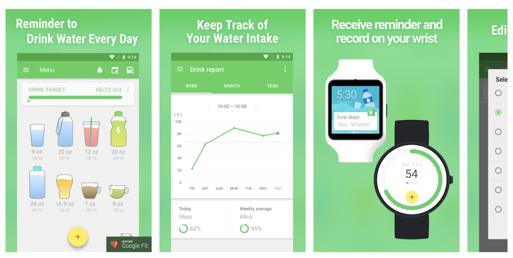 If you don’t drink enough water and want to increase your water consumption, Water Drink Reminder is one of the best Wear OS apps for you. The app that sends a notification to your wrist when you need to drink water also supports Google Fit.