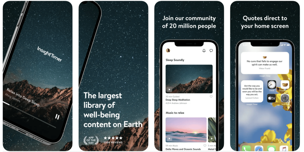 Our next best meditation app for Android and iPhone users is Insight Timer. It offers the largest free library of over 55.000 guided meditations and music tracks for anxiety, sleep, and stress.