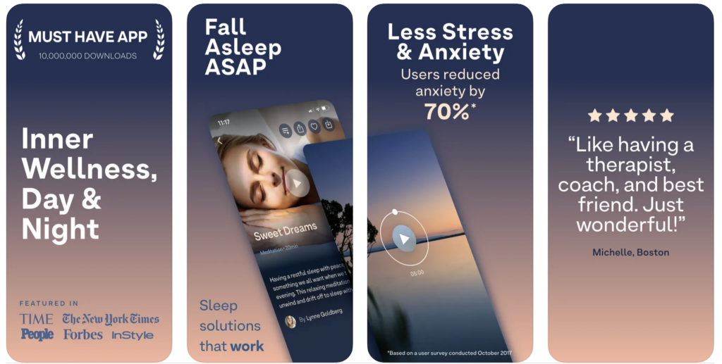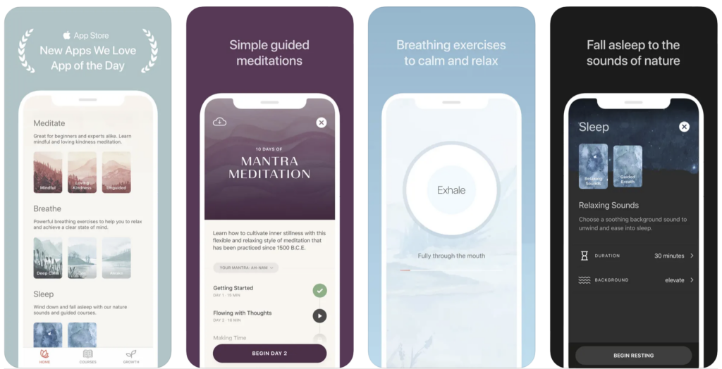 Offering many different content types such as music, sounds and stories, Breethe also allows you to benefit from the supportive experiences of professionals such as NY Times bestselling authors. The app, which you can download and use for free, also has subscription options starting from $12.99 per month.