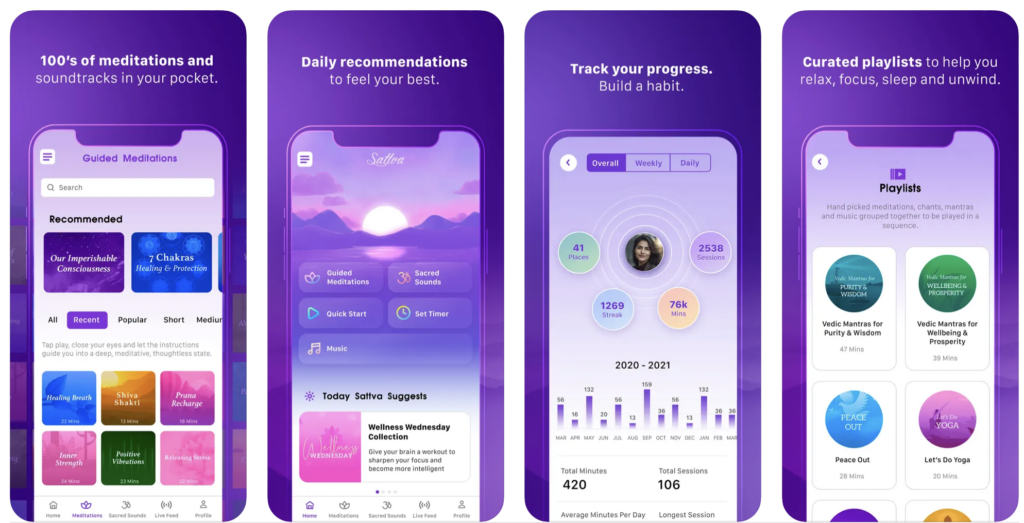 Sattva is one of the best meditation apps that transcends the conventional boundaries of mindfulness, offering users a holistic and spiritual journey toward inner peace and self-discovery. One of its distinctive features lies in its emphasis on ancient wisdom, as Sattva incorporates guided meditations, chants, and mantras led by seasoned Sanskrit scholars. This unique approach sets it apart, providing users with a profound connection to centuries-old practices that have withstood the test of time. The app serves as a sanctuary for those seeking to elevate their meditation experience, going beyond mere relaxation to foster a deeper understanding of spiritual principles.
