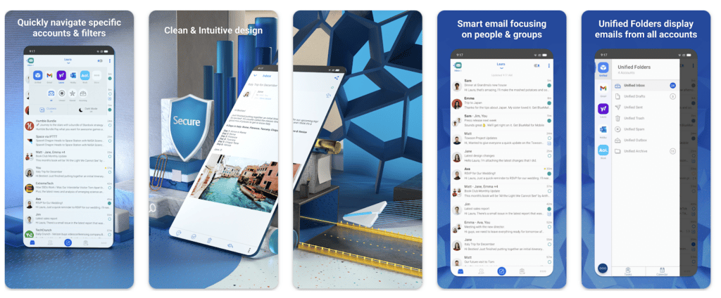 Blue Mail categorizes emails from known senders into smart clusters and organizes your emails into sub-folder structure automatically. Offering reminder support for emails you don’t have time to reply to, Blue Mail supports a bunch of clients including Gmail, Yahoo!, AOL, Outlook, Office 365 or iCloud, as well as POP3, IMAP, or Exchange clients.