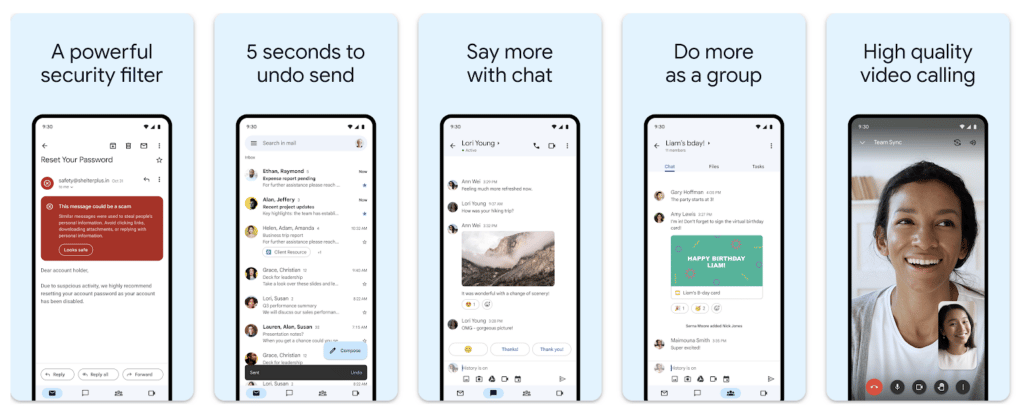 Google’s own service, Gmail, is a very popular email app used by the vast majority of Android users, as it comes pre-installed on Android devices and is completely free. It is the most prominent email app of the Google Play Store with its multi-account (Outlook, Yahoo, IMAP/POP) and multiple inbox support, email tagging features, and detailed but simple user interface, that make business and email management much easier.