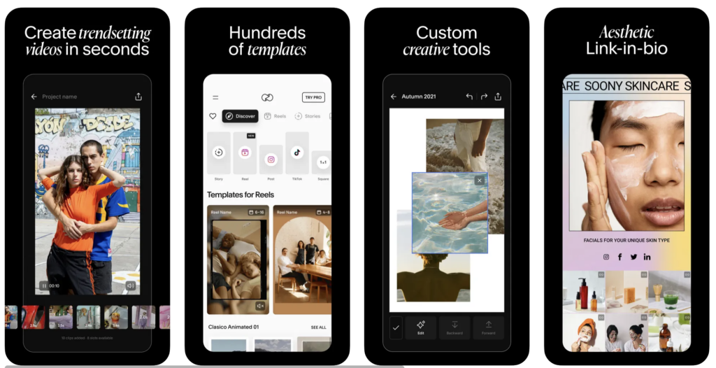 Unfold offers more than 400 ready-to-use story templates and also enables users to add texts with various fonts, very eye-catching filters and effects to their IG Story designs.
