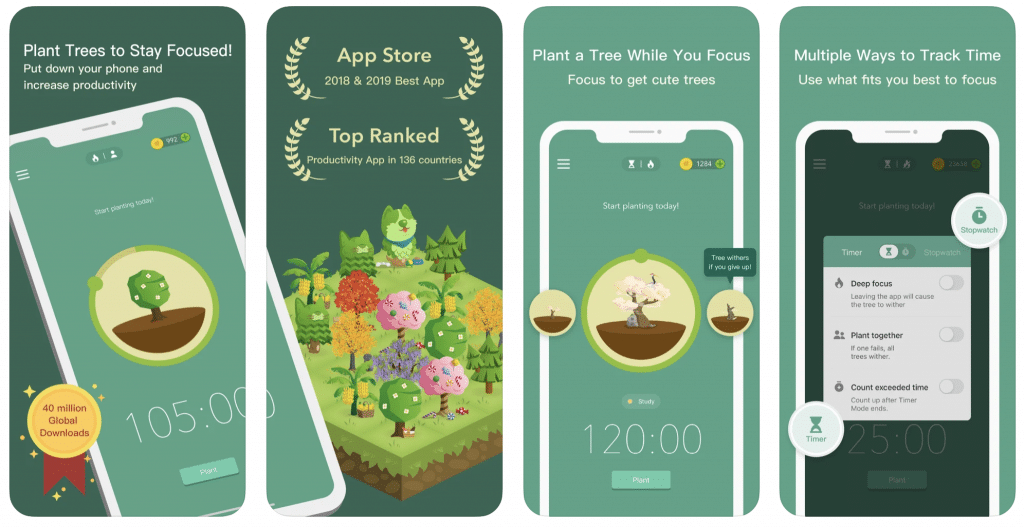 - Tree Planting: Forest: Focus for Productivity encourages users to focus and avoid distractions by growing virtual trees, with each tree representing a real tree planted in partnership with Trees for the Future.
