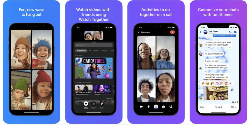 Requiring a Facebook account, Facebook Messenger is a text and video chat app allowing users to make text, voice, video, and group video chat. Mostly used for social purposes, it is a free video chat app available in Google Play and App Store. Messenger also enables users to record voice and video calls. Users can send stickers, gifs, emojis, files, photos, and videos, share their location, and call Facebook contacts via Messenger.