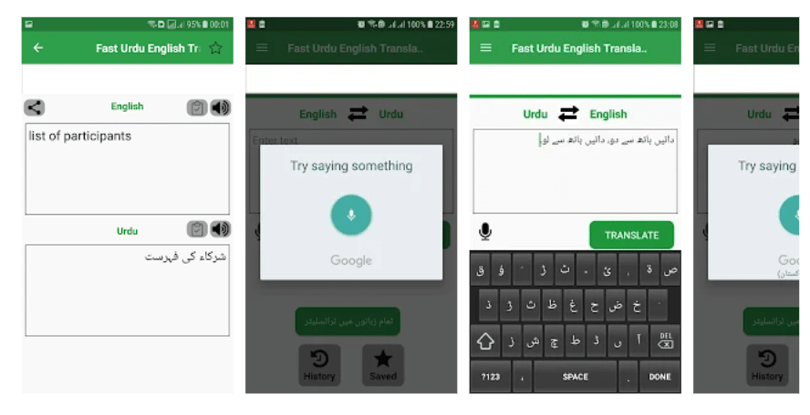 Fast English Urdu Translator is one of the best fast and free English to Urdu translation apps that you can use for both Urdu to English and English to Urdu translation. Having a large database of keywords and phrases, the app also offers a text to speech feature where you can speak English words or sentences you want to translate to Urdu. Offline translation, adding words to favorites, and saving searched keywords and sentences are also available on the app.