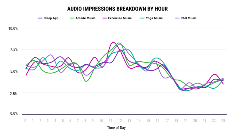 One way to identify such fraudulent activity is through usage patterns. Legitimate white noise apps typically see peak activity during nighttime, while fraudulent ones show spikes in ad impressions during the day—times when real users wouldn’t normally be streaming sleep-inducing sounds. This misalignment in usage hours stands out as a red flag, especially when compared to other relaxation apps like yoga or exercise music that would not have identical traffic surges at the same times.