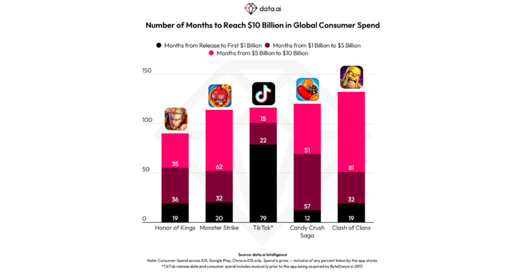 - As of December 2023, TikTok became the first non-game app which surpasses $10 billion in consumer spending.
