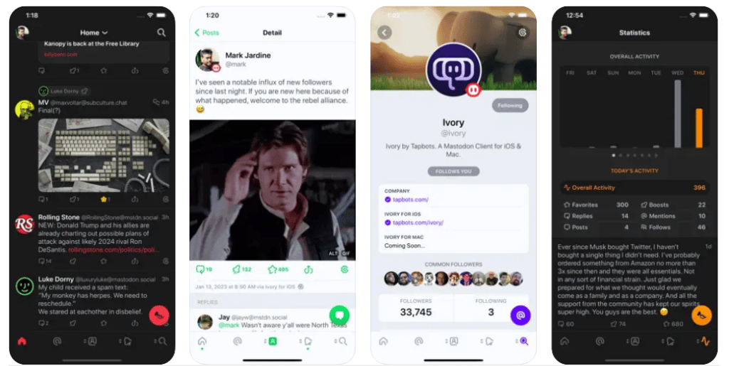 Ex-Tweetbot users won’t probably have a long adaptation period since Ivory comes with a quite similar interface. It lets you add multiple accounts, change the theme and the icon of the app, view trending posts as well local and federated timelines, check out post statistics, receive customizable notifications, and more.