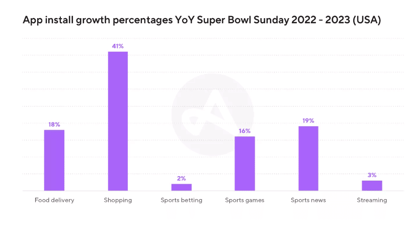 While sports betting app installs also grew by 2%, shopping app downloads jumped 41%, likely as a result of rising demand for supplies needed to organize a party, and consumers’ search for good deals amidst the global economic slowdown, regardless of the Super Bowl.